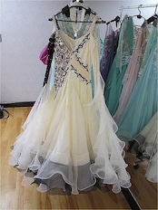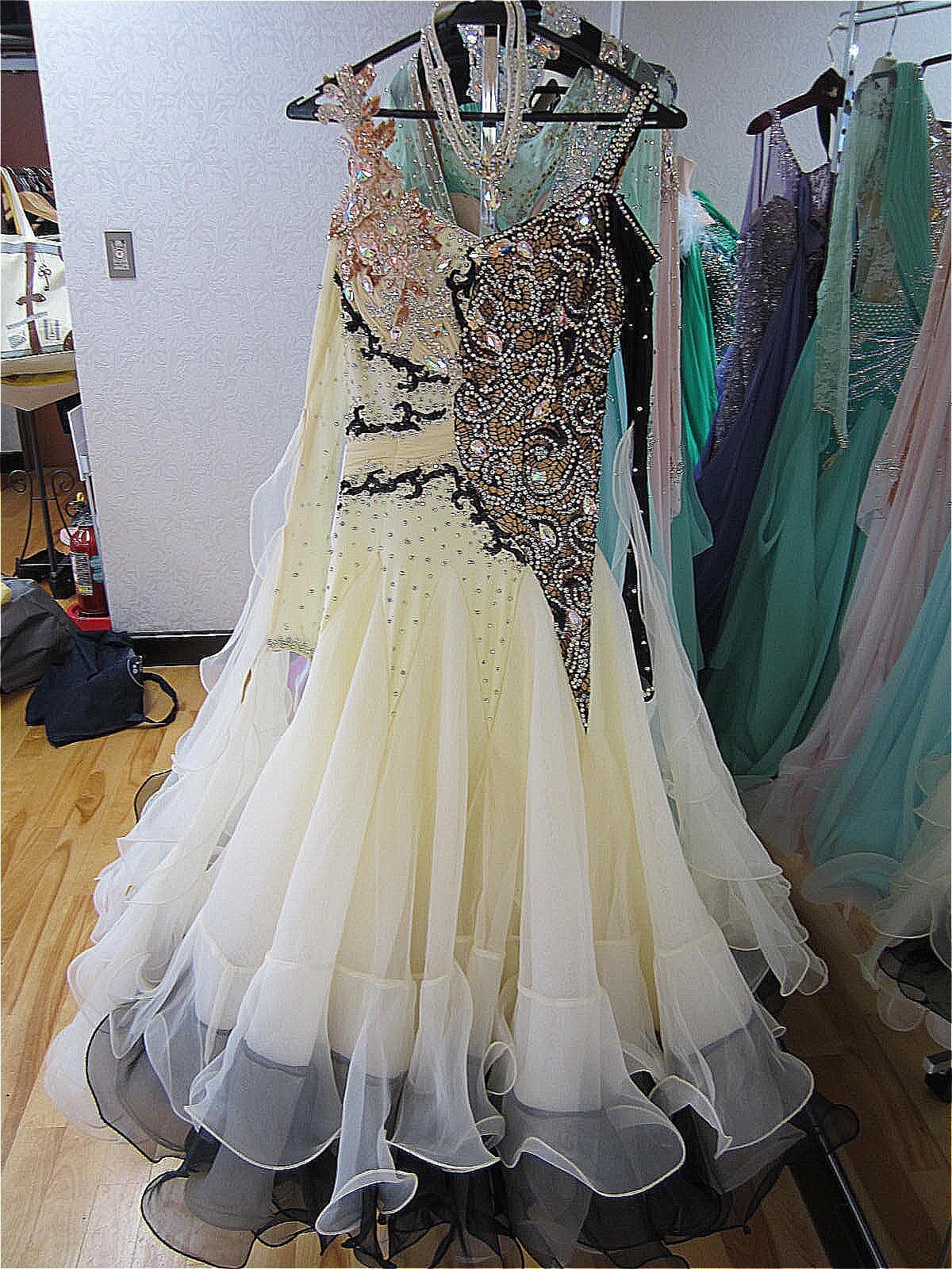 ベージュと黒の色合いでパンチのきいたドレスです。