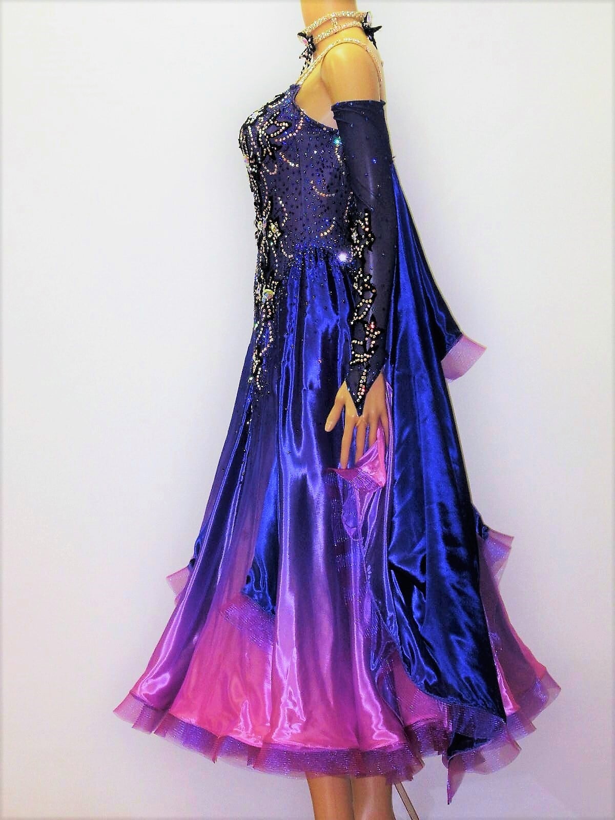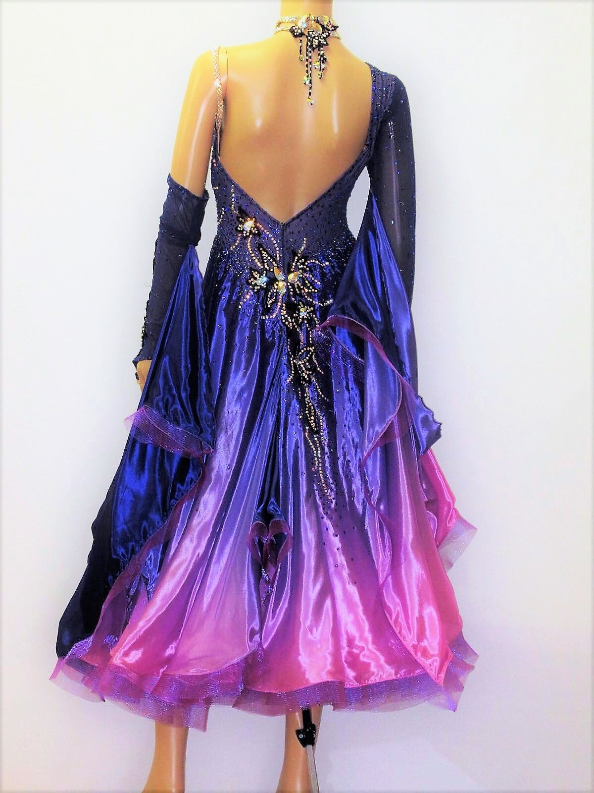 紺に紫色のグラデーションになっているパールシフォンの生地で作られているドレスです。