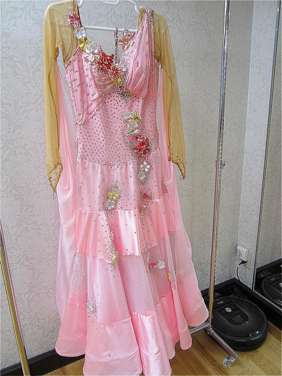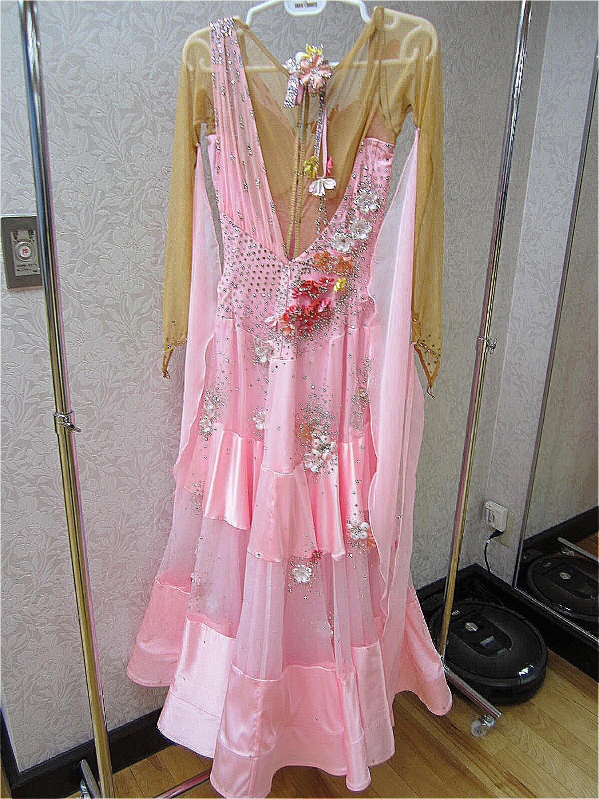 タカ・ダンス製のドレスです。スカートがオーガンジーとサテンの生地で切り替えてあり、小花がたくさんついたドレスです。