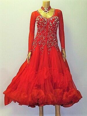 赤にストーンがゴージャスなスタンダードドレス、Mサイズです。
