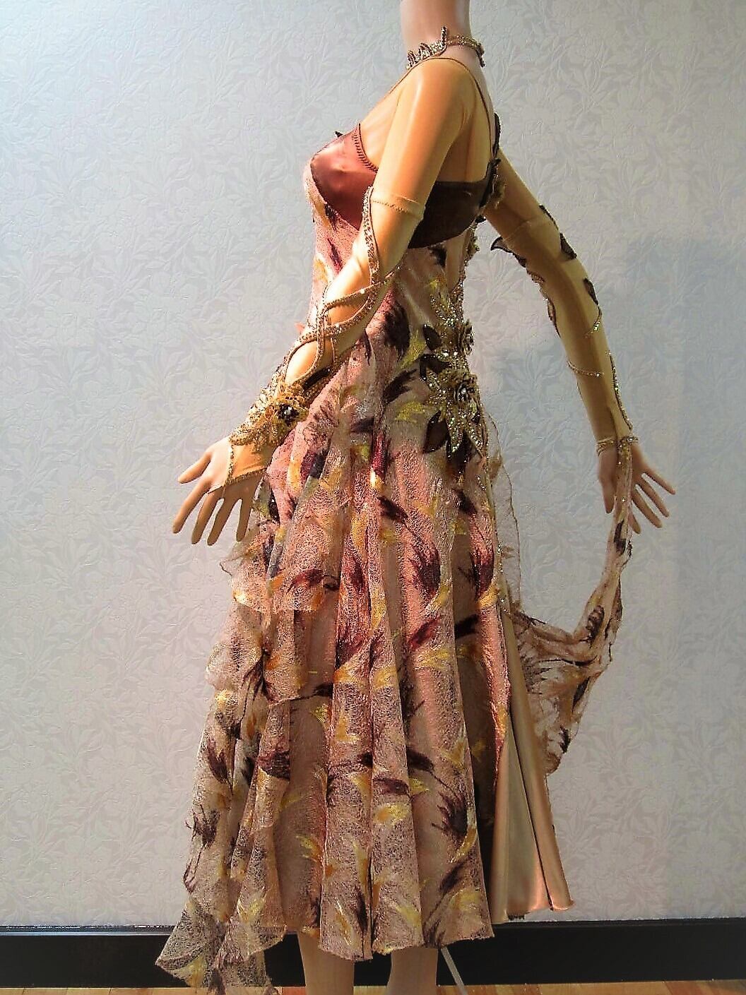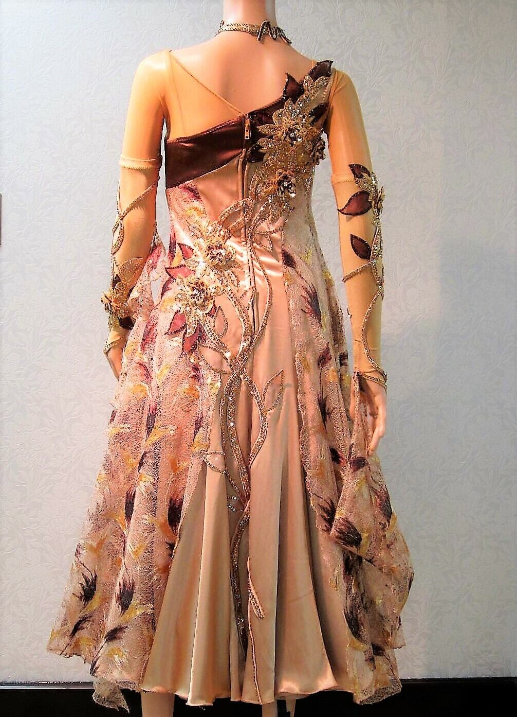 薄めのブラウンにリーフ柄の刺繍がついたスタンダードドレスLサイズです。