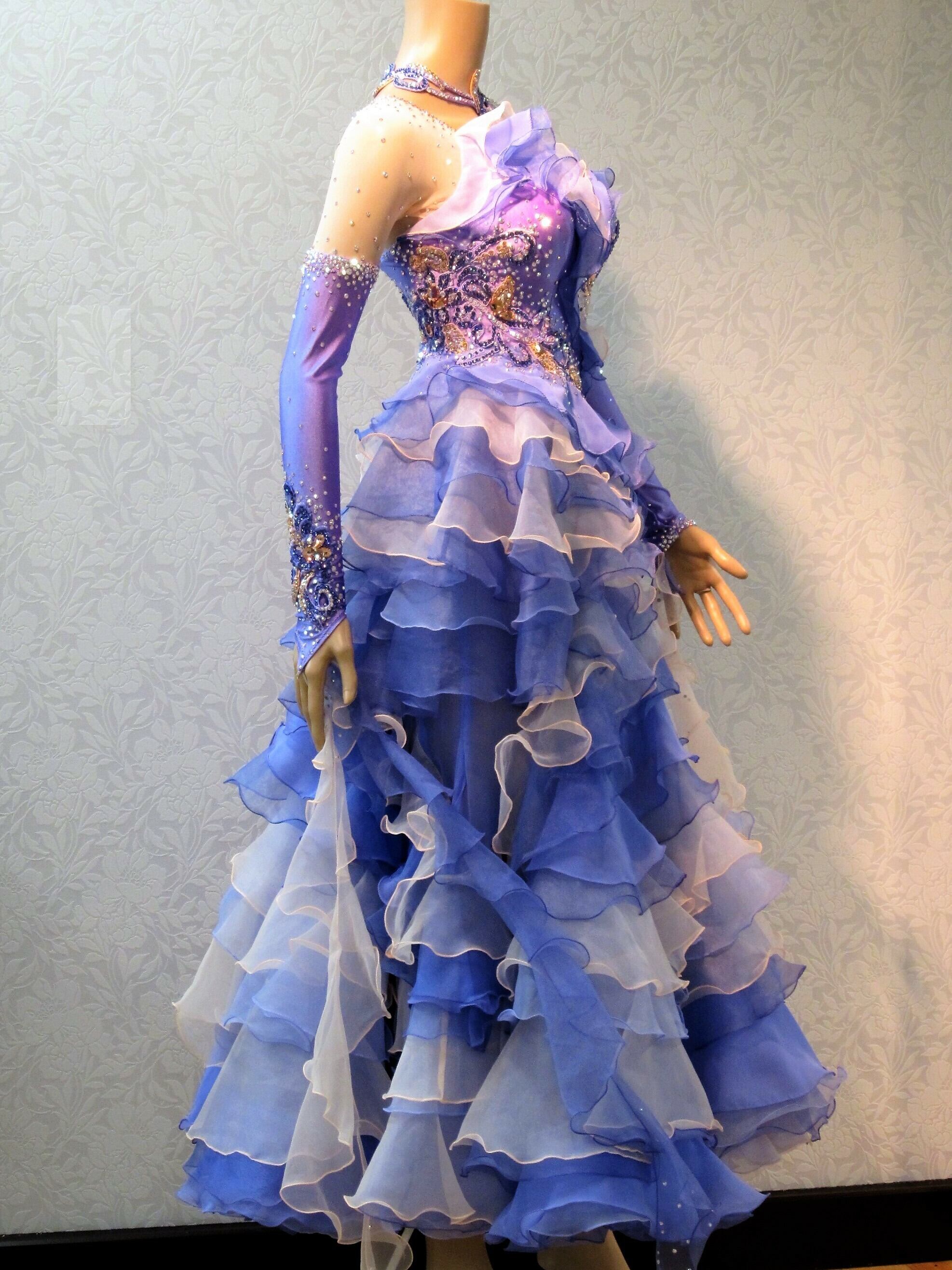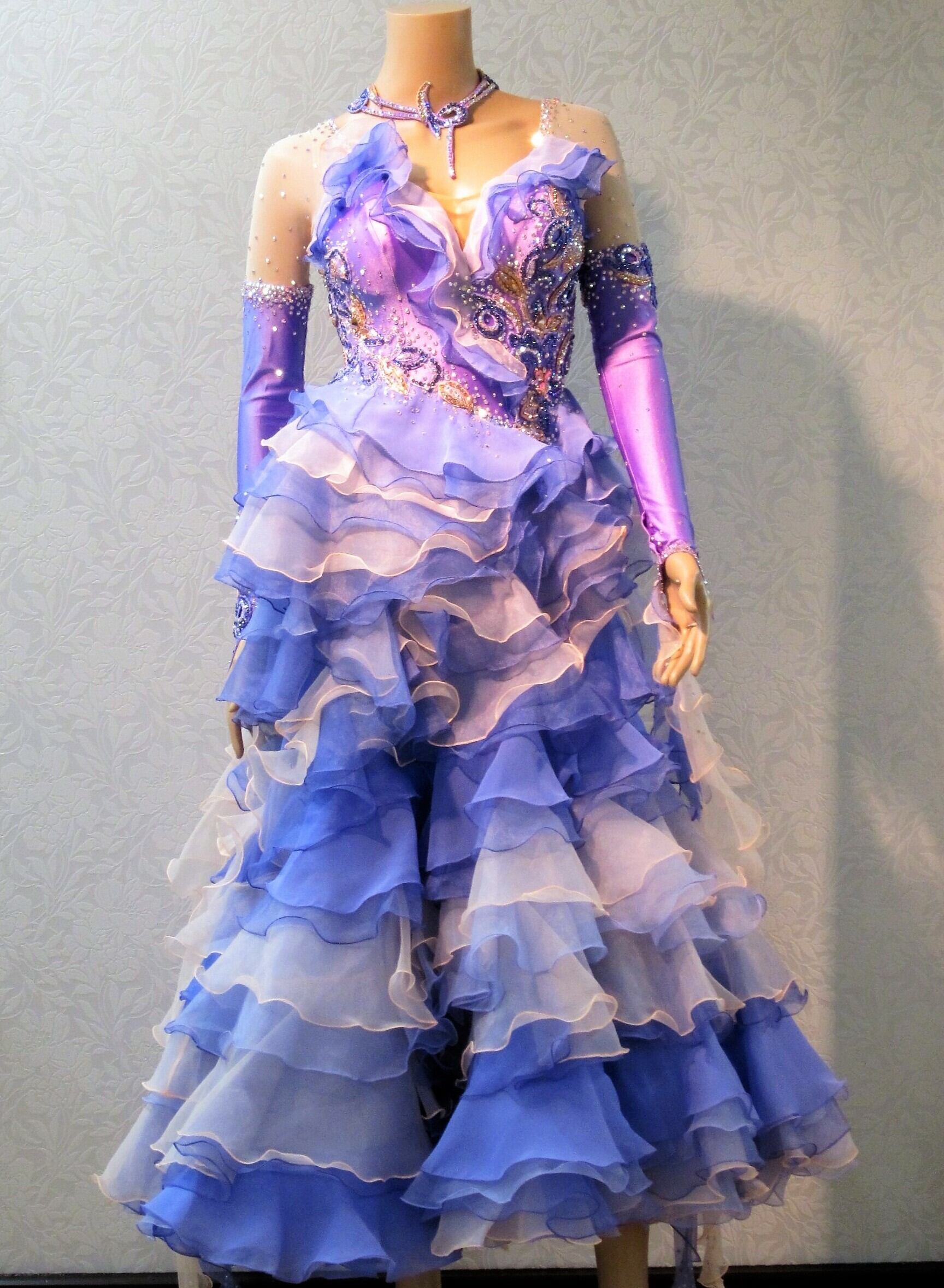 淡いパープルとピンクのレースが印象的なスタンダードドレスSMサイズです。